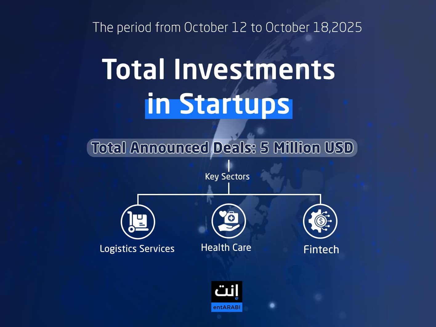 According to the entArabi report on startup investments and acquisitions covering the period from October 12 to 18, Saudi Arabia led the week’s activity with Tachyhealth’s $5 million funding round, reflecting the growing momentum of the healthtech sector as insurance institutions accelerate their digital transformation.
